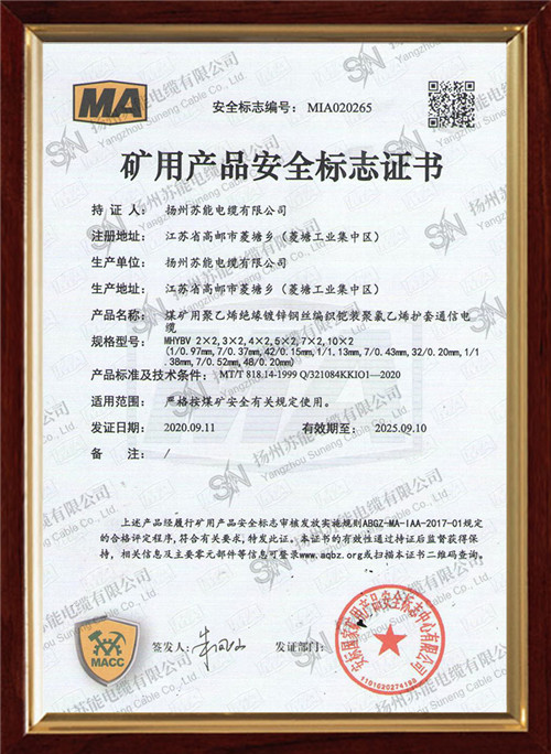 矿用产品安全标志证书